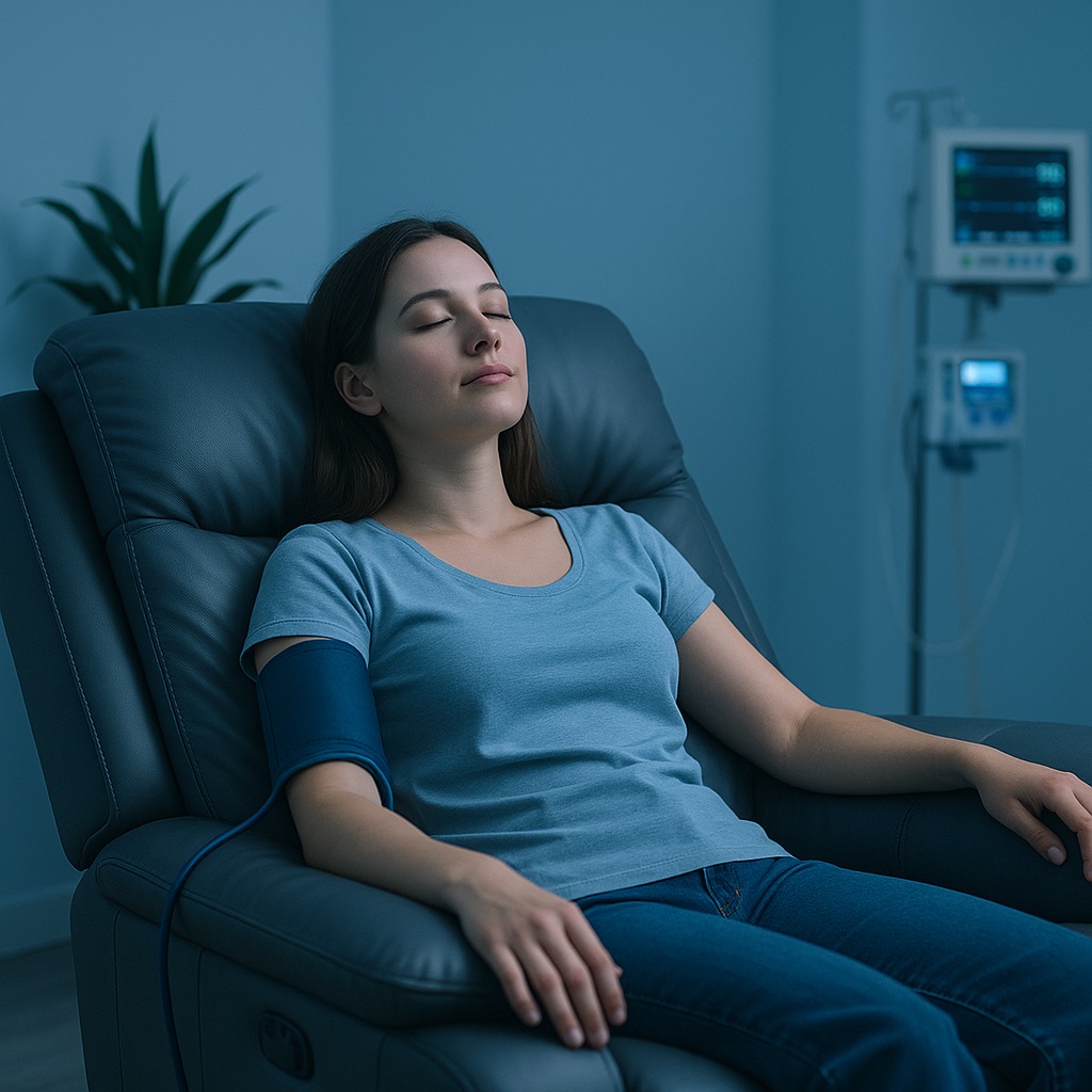 Your sessions take place in a peaceful setting with a comfortable recliner, relaxing music, and full medical supervision. Most people describe the experience as deeply introspective, peaceful, or emotionally clarifying.